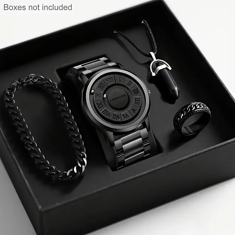 4PCS/Set Fashion Magnetic Suspension Men's Watch Jewelry Set